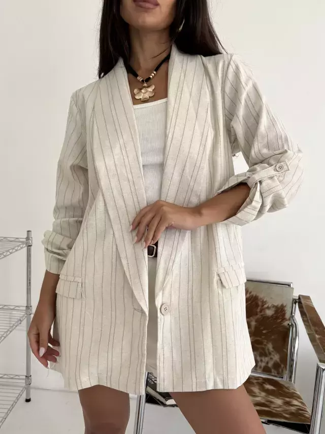 Descubrí el Blazer Teca, una prenda liviana y elegante confeccionada en lino natural, perfecta para acompañarte en tus días más cálidos. Su diseño clásico y corte impecable brindan un look sofisticado y fresco, ideal para eventos formales o casuales.